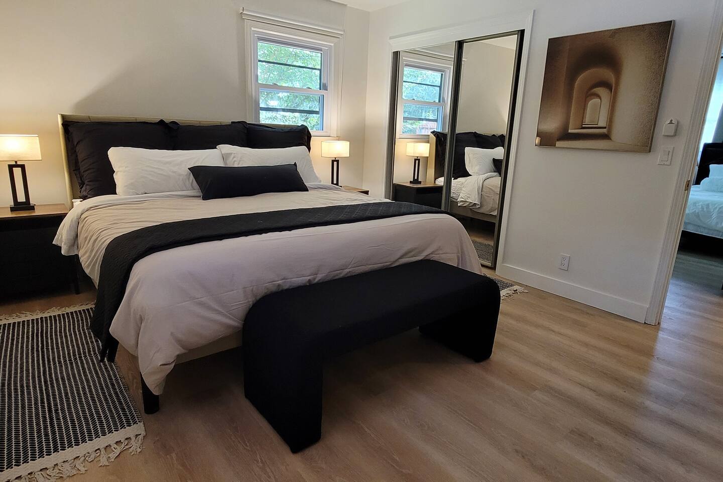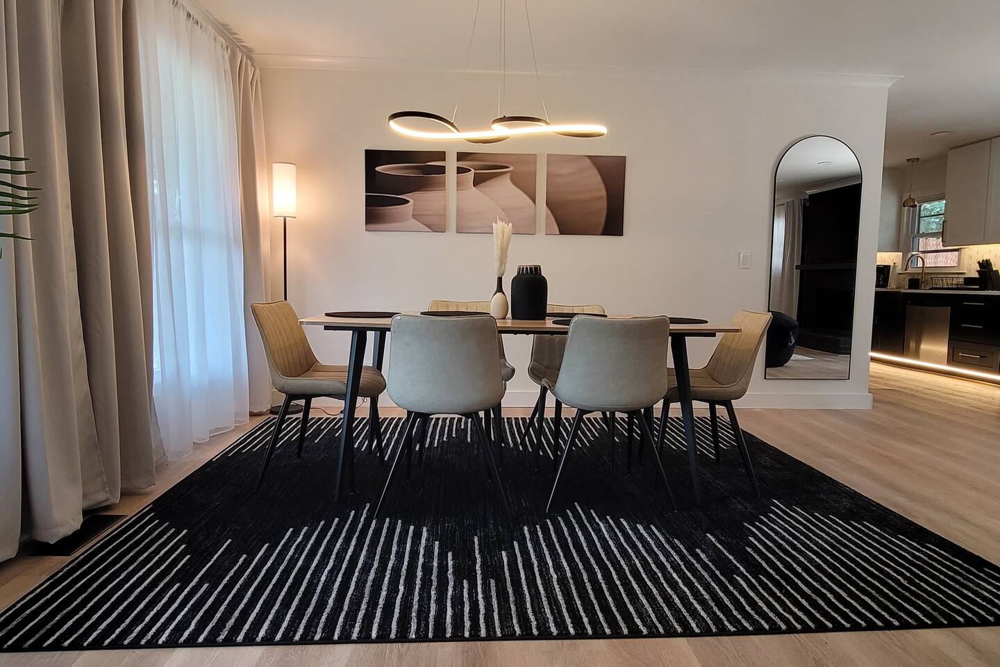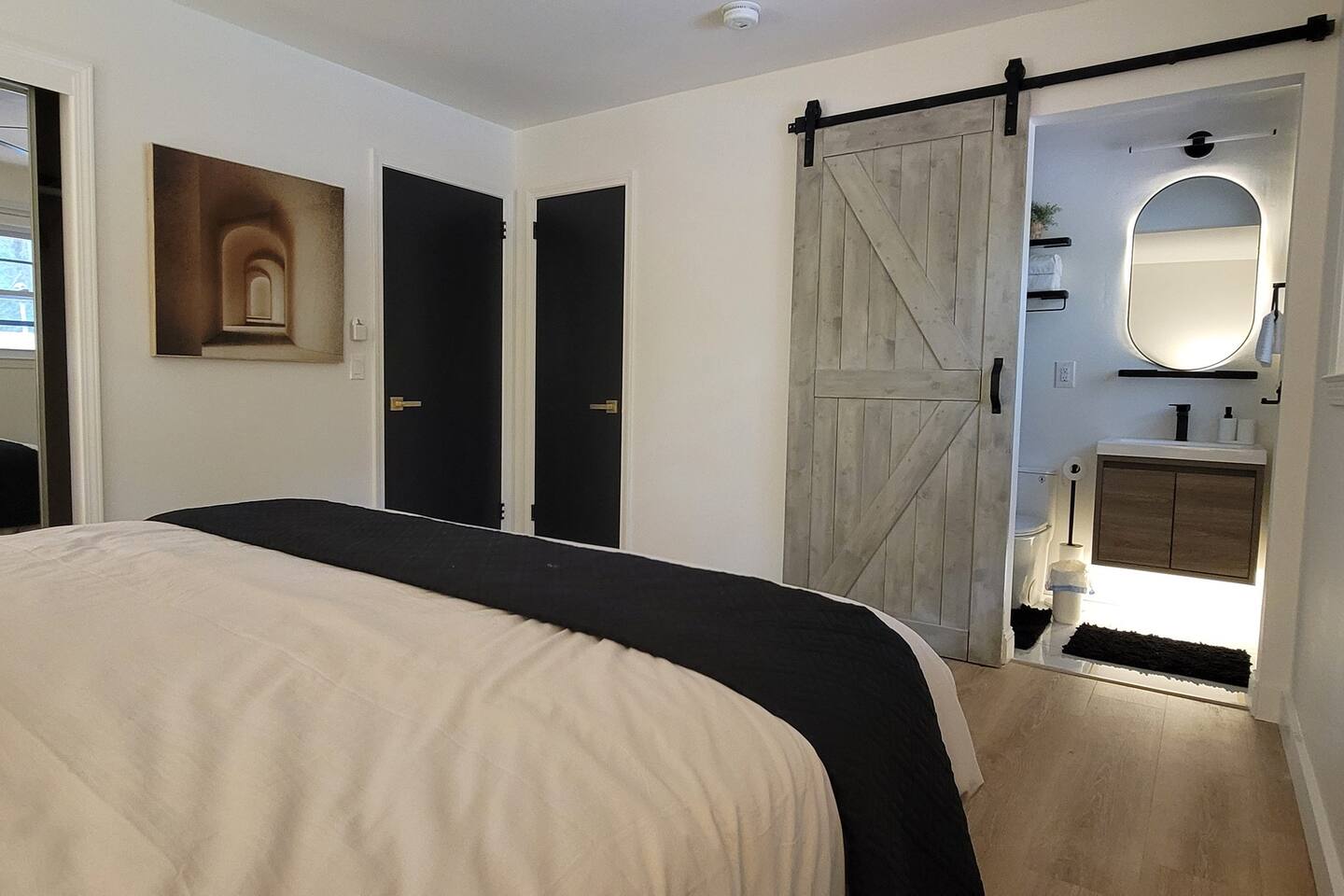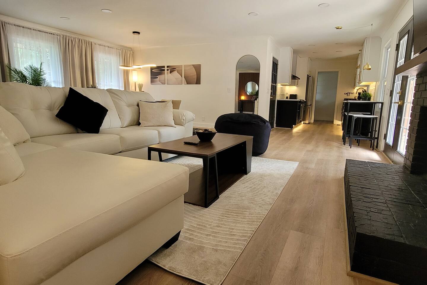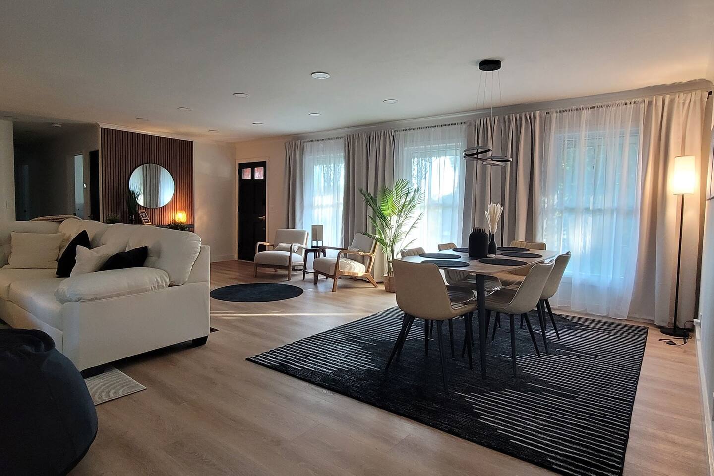 -The house is split into two separate apartments. You will be on the main floor, while the other apartment (accessed separately though a side entrance externally) may be occupied by other guests or hosts. Both spaces have their own entrances and do not share any living areas. The other apartment has no access to or view of the main floor, backyard, and pool. The other apartment's car may be parked at the bottom of the very large driveway. -Pool is available seasonally April through October only. Outside of the season, it will be winterized, and the pool fence door will be locked for safety. -The house is surrounded by scenic trees, so leaves may fall into the pool. We clean the pool before your arrival, but wind may cause debris. An automated skimmer robot and a manual skimmer net are provided. We recommend placing the robot in the pool while nobody is swimming. -If your booking is during or immediately after a storm, we will try to provide a clean pool, but it may not be available for swimming. We will make every effort with our pool company to clean the water as soon as possible. -The outdoor grill uses natural gas. Please do not use charcoal as it will damage the burners. -The pool water is not heated. -The smart Fire TV offers multiple streaming apps. Please log into your account and remember to log out before you leave. -For your security and per insurance requirements, we have cameras around the house, positioned to view the front, side, and backyard, with no view inside the house. -To ensure the highest quality of stay, the landscaping team comes out every Monday/Tuesday to mow the lawn, trim bushes, blow leaves etc. -The pool is serviced by a pool technician every Friday/Saturday. They will enter through the backyard door and introduce themselves as such. They will clean and test the water chemistry. The pool should be safe to swim in within 15 minutes unless otherwise noted by the pool technician. -Trash collection takes place every Friday morning. For collection, both black lid containers must be placed at the bottom of the driveway Thursday evening. We look forward to hosting you and ensuring you have a memorable stay in our cozy and relaxing home!