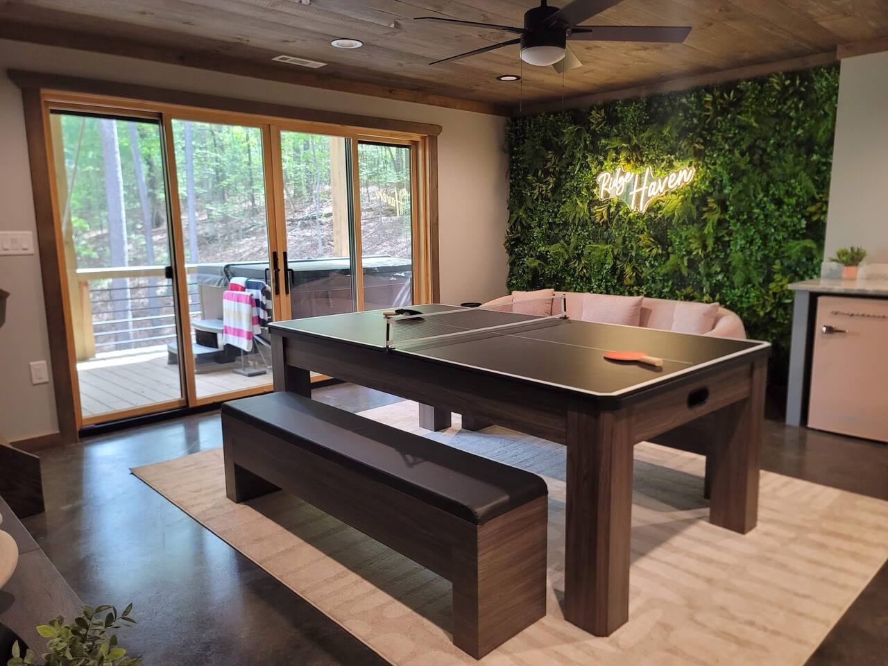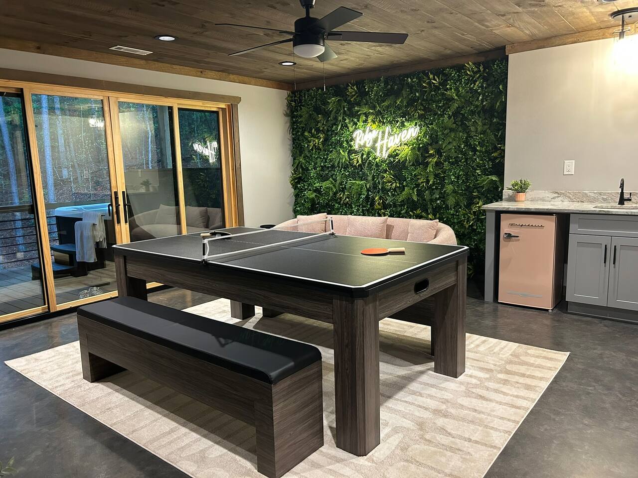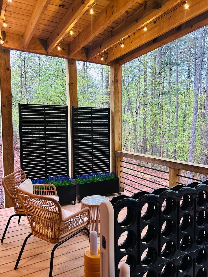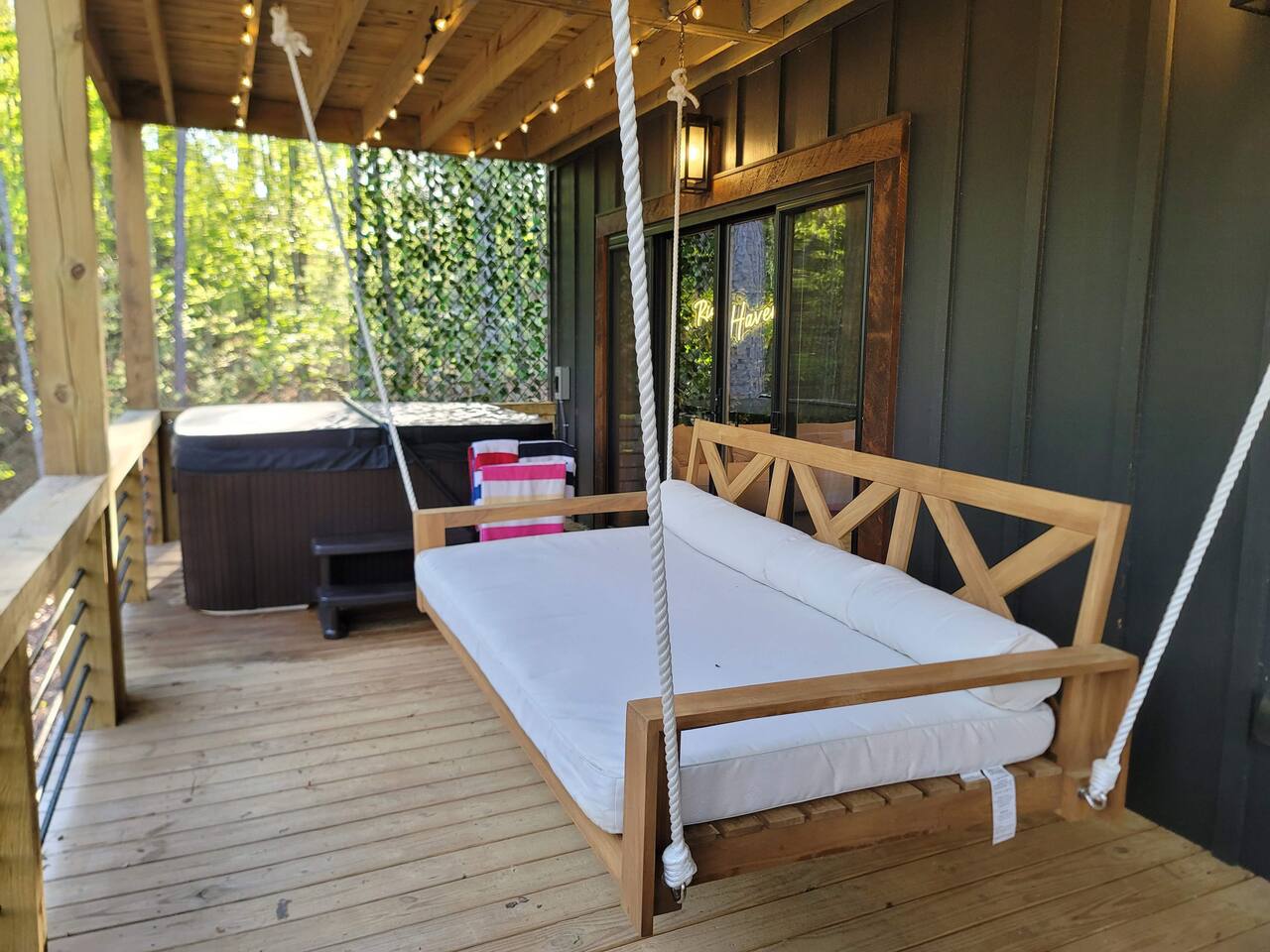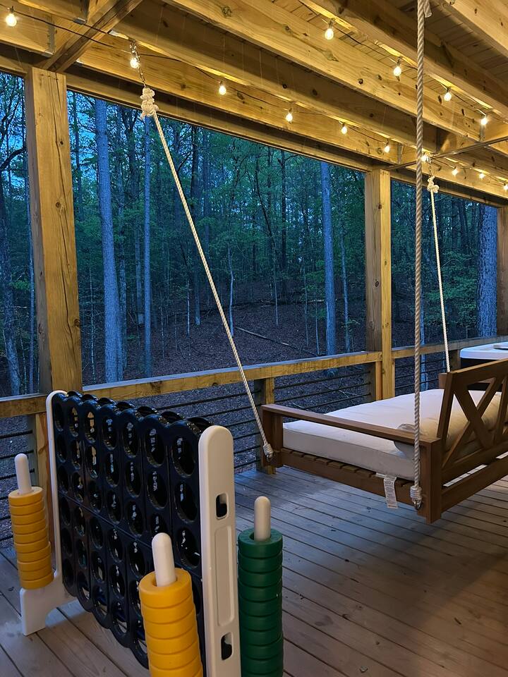 Step outside onto the spacious deck and take in the peaceful view of the surrounding woods. Whether you're soaking in the hot tub, grilling dinner, or relaxing on the swing, this is mountain living at its finest. The Space Features: ** New Construction Design with beautiful floor to ceiling windows ** ** Outdoor Dining Area - Enjoy the serene outdoors on the upper deck's beautiful dining area ** ** Propane BBQ Grill - A high quality Weber Grill for all grilling enthusiasts! ** ** Private hot tub under the stars ** ** Game room with ping-pong table, air hockey, board games, a 65" Roku TV, and a jumbo connect-4 right outside on the deck for the ultimate fun time! ** ** Bed Swing – a perfect spot for outdoor relaxation ** ** Chic Cozy Living Room – Unwind with a 70" Roku Smart TV, fireplace, and large windows with tranquil forest views ** ** Two Fireplaces - An outdoor wood burning fireplace and an indoor gas one for your convenience ** ** Entertainment - A total of 4 large smart Roku TVs for your family's entertainment! A 70" in the living room, a 65" in the game room, and two 65" TVs for each king bedroom ** ** High-speed Wi-Fi - Tested and reliable for working from home ** ** Sleeping Arrangement - 2 King Bedrooms each featuring a plush king bed and a 65" Roku Smart TV. 1 Bunk Room – Twin XL over Twin XL bunks, perfect for kids or adults ** ** Modern Kitchen – Fully stocked for home-cooked meals ** ** Two Laundry Rooms - One per each floor so you won't need to go up and down the stairs ** ** Easily Accessible - The cabin is situated in a serene quiet area which is easily accessible through paved roads, so you won't have to worry about getting stuck on muddy roads or floods even through the heaviest rains! ** Nearby Attractions: The cabin is situated just minutes from the many Blue Ridge and Cherry Log Mountain attractions. Here are some suggestions for you to explore: - Downtown McCaysville & Blue Ridge - Toccoa River – a haven for fishing enthusiasts - Blue Ridge Mountain Kayaking - Toccoa River Tubing Company - Blue Ridge Scenic Railway - Fall Branch Falls - Tank Town USA - Lake Blue Ridge Marina - Horseback Riding: Appalacian Trail Rides & Cowgirl Up Stables - Mercier Orchards Whether you’re seeking outdoor adventure or quiet relaxation, Ridge Haven is your perfect Blue Ridge basecamp. Book your stay today and experience the mountain magic!