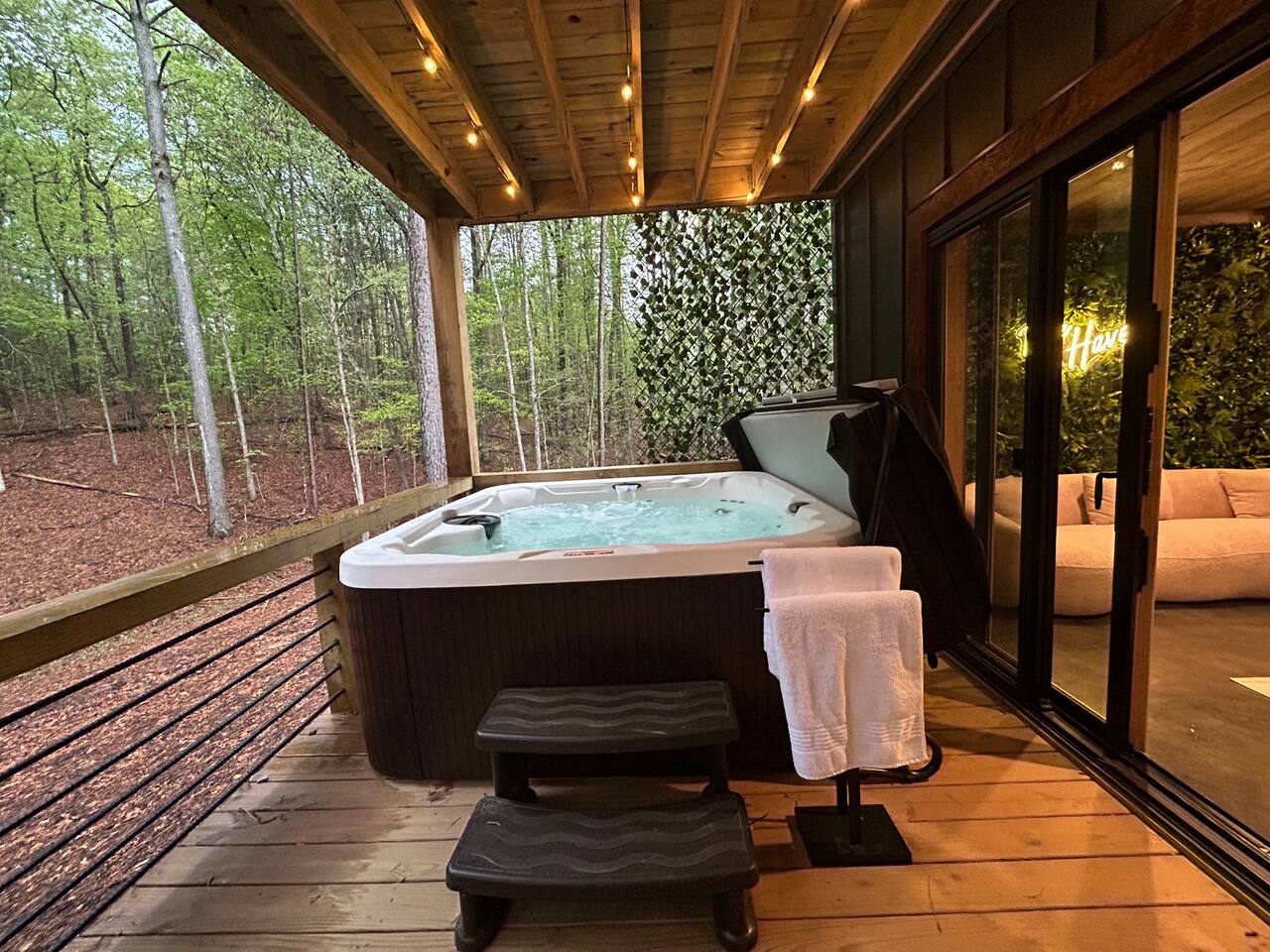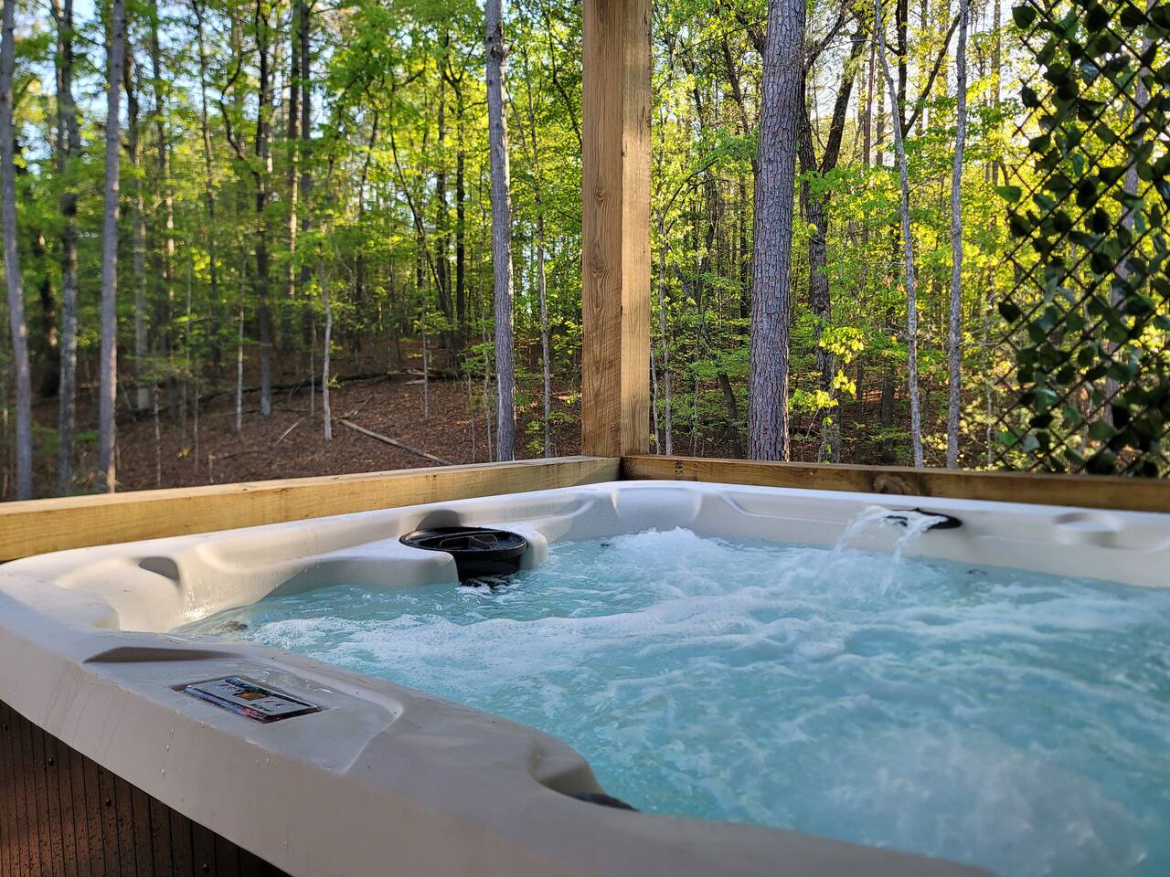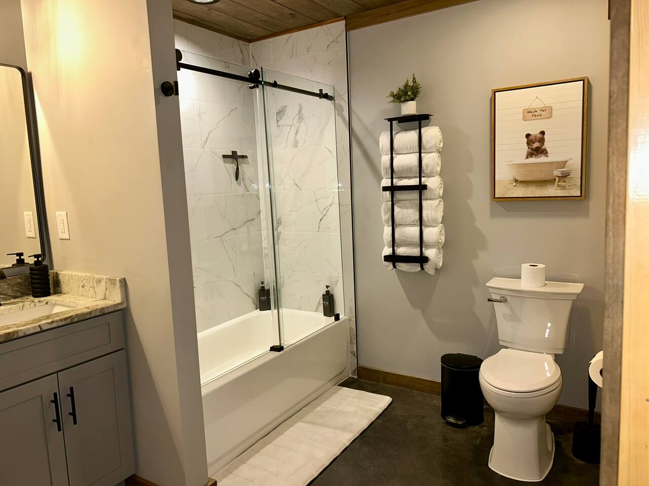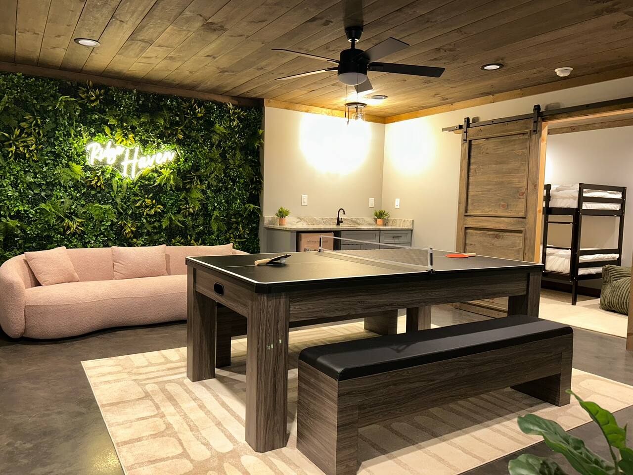Step outside onto the spacious deck and take in the peaceful view of the surrounding woods. Whether you're soaking in the hot tub, grilling dinner, or relaxing on the swing, this is mountain living at its finest. The Space Features: ** New Construction Design with beautiful floor to ceiling windows ** ** Outdoor Dining Area - Enjoy the serene outdoors on the upper deck's beautiful dining area ** ** Propane BBQ Grill - A high quality Weber Grill for all grilling enthusiasts! ** ** Private hot tub under the stars ** ** Game room with ping-pong table, air hockey, board games, a 65" Roku TV, and a jumbo connect-4 right outside on the deck for the ultimate fun time! ** ** Bed Swing – a perfect spot for outdoor relaxation ** ** Chic Cozy Living Room – Unwind with a 70" Roku Smart TV, fireplace, and large windows with tranquil forest views ** ** Two Fireplaces - An outdoor wood burning fireplace and an indoor gas one for your convenience ** ** Entertainment - A total of 4 large smart Roku TVs for your family's entertainment! A 70" in the living room, a 65" in the game room, and two 65" TVs for each king bedroom ** ** High-speed Wi-Fi - Tested and reliable for working from home ** ** Sleeping Arrangement - 2 King Bedrooms each featuring a plush king bed and a 65" Roku Smart TV. 1 Bunk Room – Twin XL over Twin XL bunks, perfect for kids or adults ** ** Modern Kitchen – Fully stocked for home-cooked meals ** ** Two Laundry Rooms - One per each floor so you won't need to go up and down the stairs ** ** Easily Accessible - The cabin is situated in a serene quiet area which is easily accessible through paved roads, so you won't have to worry about getting stuck on muddy roads or floods even through the heaviest rains! ** Nearby Attractions: The cabin is situated just minutes from the many Blue Ridge and Cherry Log Mountain attractions. Here are some suggestions for you to explore: - Downtown McCaysville & Blue Ridge - Toccoa River – a haven for fishing enthusiasts - Blue Ridge Mountain Kayaking - Toccoa River Tubing Company - Blue Ridge Scenic Railway - Fall Branch Falls - Tank Town USA - Lake Blue Ridge Marina - Horseback Riding: Appalacian Trail Rides & Cowgirl Up Stables - Mercier Orchards Whether you’re seeking outdoor adventure or quiet relaxation, Ridge Haven is your perfect Blue Ridge basecamp. Book your stay today and experience the mountain magic!